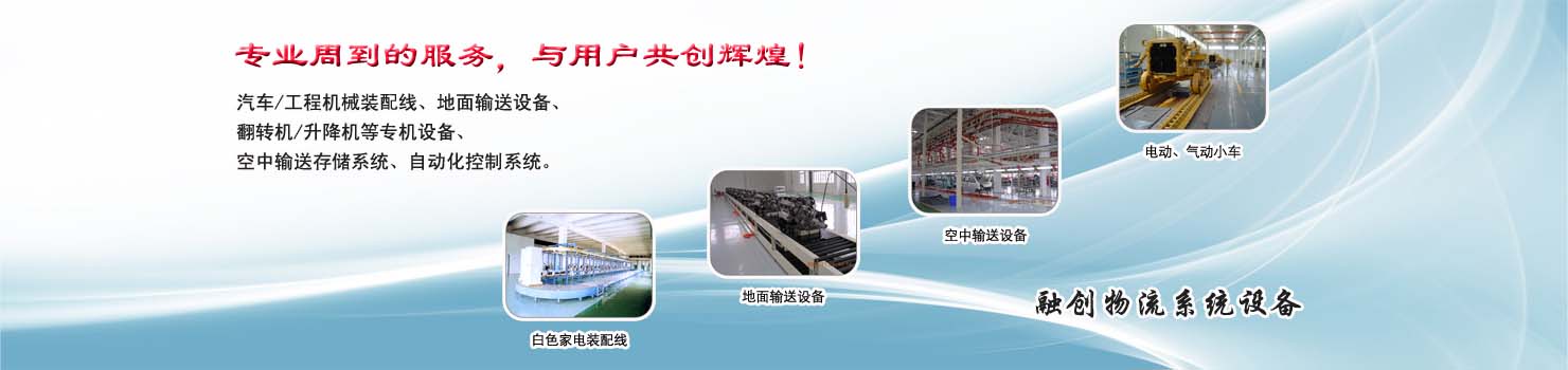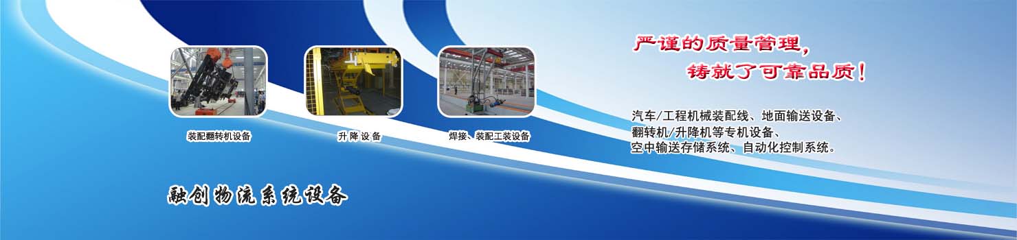 無錫市融創(chuàng)物流系統(tǒng)設(shè)備有限公司專業(yè)從事物流輸送設(shè)備、各類裝配流水線設(shè)備、各類生產(chǎn)非標專機設(shè)備和自動化控制系統(tǒng)的專業(yè)生產(chǎn)企業(yè)。廣泛應用于轎車、卡車、客車、各類工程機械、發(fā)動機、車橋、農(nóng)業(yè)機械、郵政、家電等行業(yè) ...... >> more >>